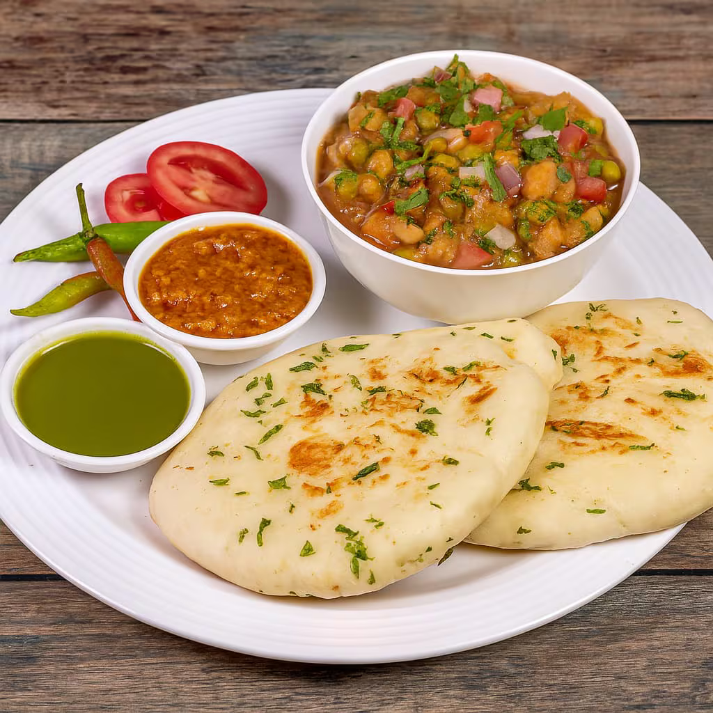 मक्खन में तले हुए गर्म कुल्चे, एक मसालेदार मटर के मिश्रण के साथ परोसा जाता है, जो धनिया, हरी मिर्च, नींबू का रस और कभी -कभी अनार के बीजों के साथ सुगंधित होता है।