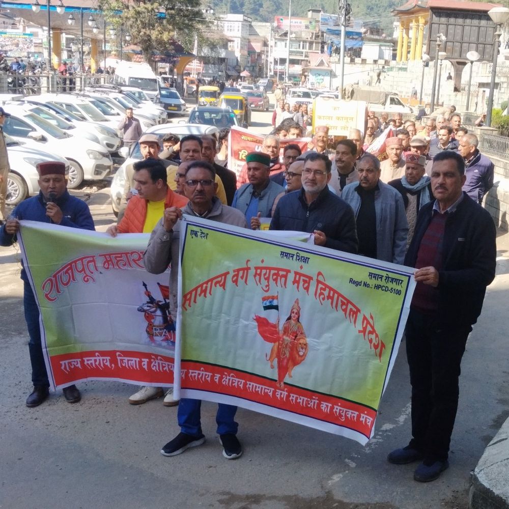 मंडी के सेरी मंच पर राजपूत महासभा हिमाचल प्रदेश के तत्वावधान में सामान्य वर्ग संयुक्त मंच से जुड़े प्रमुख संगठनों ने यूजीसी के काले कानून के विरोध में सामूहिक प्रदर्शन किया। इस प्रदर्शन में राजपूत सभा मंडी, ब्राह्मण सभा, महाजन सभा, खत्री सभा, अहलूवालिया सभा और नामधारी सिख संगत के सदस्यों ने सक्रिय रूप से हिस्सा लिया। इस अवसर पर राजपूत महासभा व सामान्य वर्ग संयुक्त मंच के प्रदेश अध्यक्ष ई.केएस जम्वाल ने कहा कि सामान्य वर्ग के सभी संगठन यूजीसी के इस कानून के विरोध में प्रदेशव्यापी आंदोलन करेंगे। उन्होंने राष्ट्रपति, केंद्र सरकार और प्रदेश के सभी सांसदों को ज्ञापन सौंपकर इसे तुरंत वापस लेने की मांग की। राष्ट्रीय स्तर पर होगा आंदोलन जम्वाल ने यह भी कहा कि वे राष्ट्रीय स्तर पर जारी आंदोलन में भी सक्रियता से भाग लेंगे और यदि सरकार नहीं मानती है, तो भविष्य में ऐसी सरकार को सबक सिखाने से पीछे नहीं हटेंगे। जम्वाल ने बताया कि सामान्य वर्ग के लोग पहले से ही एससी-एसटी एट्रोसिटी एक्ट जैसे कानूनों से पीड़ित हैं। अब विश्वविद्यालयों में शिक्षा प्राप्त कर रहे युवाओं को भी इस नए कानून के माध्यम से प्रताड़ित करने का प्रयास किया जा रहा है। उन्होंने आरोप लगाया कि इस कानून में एससी-एसटी के साथ ओबीसी को भी जोड़कर छात्रों के बीच जाति आधारित वैमनस्य पैदा करने की कोशिश की जा रही है। कानून के विरोध में एकजुट होने का आह्वान उन्होंने यह भी बताया कि इस कानून के तहत विश्वविद्यालयों की स्क्रीनिंग कमेटियों में एससी, एसटी और ओबीसी वर्ग के लोगों को ही शामिल किया गया है। साथ ही, झूठी शिकायत करने वालों के खिलाफ कार्रवाई का कोई प्रावधान नहीं है, बल्कि आरोपी को स्वयं को निर्दोष साबित करना होगा। रैली को अन्य प्रमुख संगठनों के शीर्ष पदाधिकारियों ने भी संबोधित किया। सभी वक्ताओं ने इस ‘काले कानून’ के खिलाफ एकजुट होकर खड़े होने का आह्वान किया।