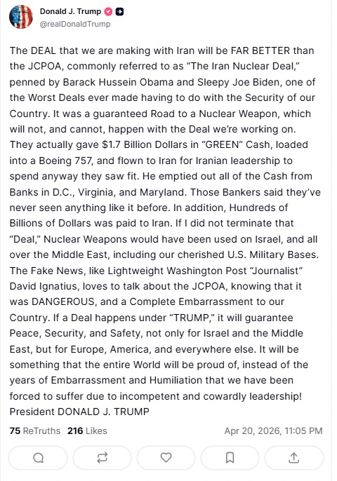 इस असमंजस के बीच ट्रंप ने सोशल मीडिया पोस्ट कर कहा कि हम ईरान के साथ जो डील करने जा रहे हैं. वह JCPOA (ईरान न्यूक्लियर डील) से बेहतर होगी. यह डील बराक ओबामा और स्लीपी जो बाइडेन ने की थी, जो हमारे देश की सुरक्षा से जुड़े सबसे खराब डील्स में से एक थी. यह डील ईरान को न्यूक्लियर हथियार बनाने की तरफ ले जाने वाली गारंटी थी. अगर हम इस नई डील पर काम नहीं कर रहे होते, तो यह पुरानी डील हो ही जाती.