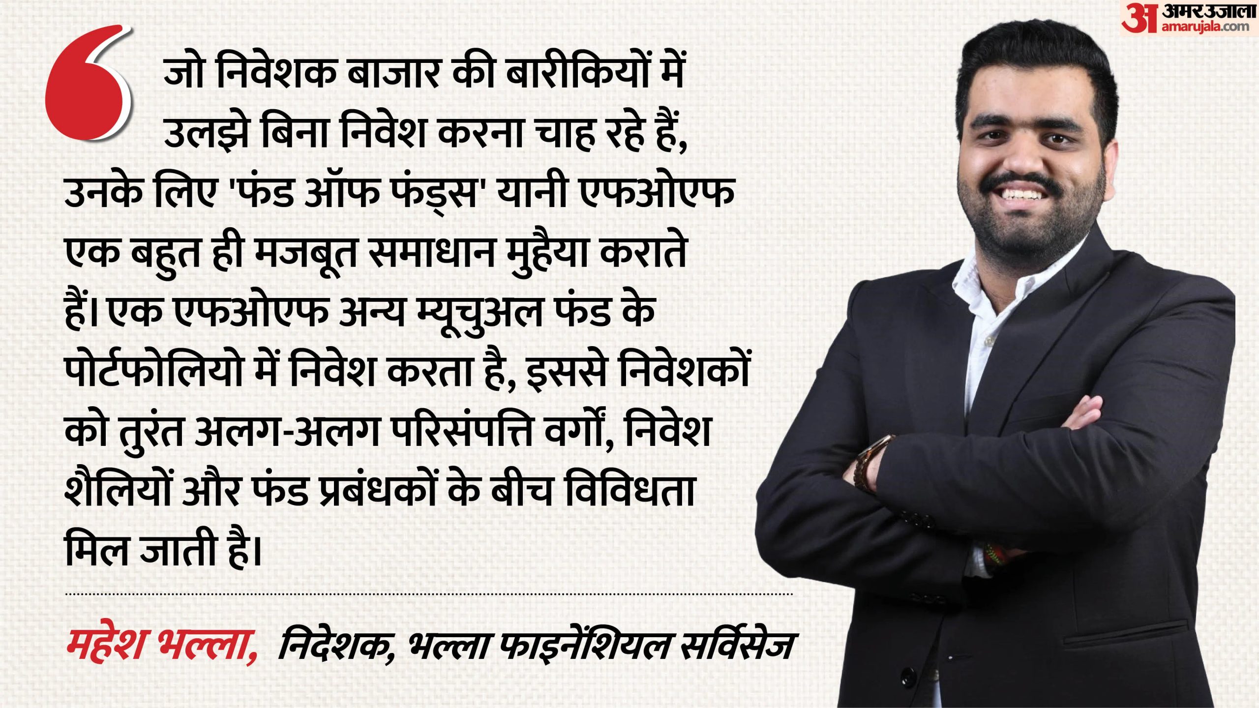 **भल्ला फाइनेंशियल सर्विसेज** के निदेशक महेश भल्ला कहते हैं, ‘’जो निवेशक बाज़ार की ‘बारीकियों’ में उलझे बिना निवेश करना चाहते हैं, उनके लिए ‘फंड ऑफ फंड्स’ एक ‘मजबूत समाधान’ है।’’ मगर क्या आप जानते हैं कि ये बदलाव सिर्फ ‘नियमों’ तक ही सीमित नहीं है? बल्कि ये ‘वैश्विक आर्थिक बदलावों’ का हिस्सा है। क्योंकि दुनिया भर के निवेशक अब ‘स्थिर रिटर्न’ और ‘कम जोखिम’ की तलाश में हैं।