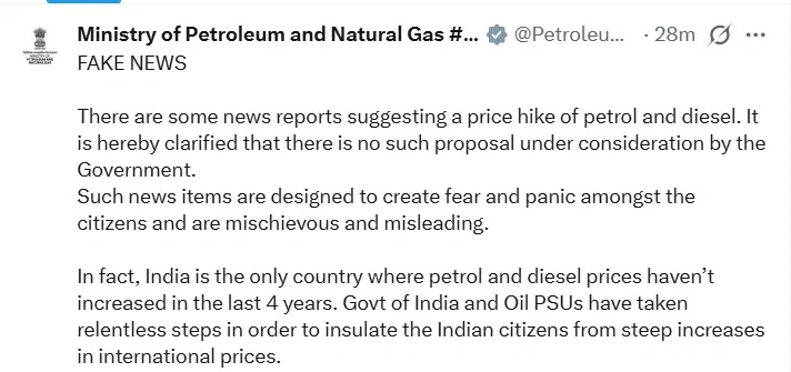 कल्पना कीजिए, पेट्रोल और डीजल की कीमतें अचानक बढ़ जाएं, तो लोगों की जिंदगी कैसे प्रभावित होगी। हैरान करने वाली बात ये है कि पेट्रोलियम व प्राकृतिक गैस मंत्रालय ने ऐसी खबरों को भ्रामक बताया है। मंत्रालय ने कहा कि कुछ समाचार रिपोर्टों में पेट्रोल और डीजल की कीमतों में बढ़ोतरी का दावा किया जा रहा है, लेकिन सरकार के सामने फिलहाल पेट्रोल और डीजल के दाम बढ़ाने का कोई प्रस्ताव नहीं है। सच्चाई इससे भी भयानक है कि ऐसी खबरें लोगों में डर और घबराहट फैलाने के उद्देश्य से चलाई जा रही हैं। दास्तां ये है कि भारत दुनिया का एकमात्र ऐसा देश है, जहां पिछले चार वर्षों में पेट्रोल और डीजल की कीमतों में कोई बढ़ोतरी नहीं हुई है। खौफ ये है कि अंतरराष्ट्रीय बाजार में कच्चे तेल की कीमतों में तेज बढ़ोतरी के बावजूद आम जनता को राहत देने के लिए भारत सरकार और सार्वजनिक क्षेत्र की तेल कंपनियों ने लगातार कदम उठाए हैं। मंजर ये है कि सरकार ने पेट्रोल और डीजल की कीमतों को नियंत्रित करने के लिए कई कदम उठाए हैं, जैसे कि टैक्स में कटौती और सब्सिडी देना। ये एक बड़ा फैसला है, जिससे आम जनता को राहत मिली है। लेकिन सवाल ये है कि क्या ऐसे फैसले लंबे समय तक जारी रहेंगे? क्या सरकार पेट्रोल और डीजल की कीमतों को नियंत्रित करने के लिए और कदम उठाएगी? पाठकों की राय: क्या आपको लगता है कि सरकार पेट्रोल और डीजल की कीमतों को नियंत्रित करने के लिए और कदम उठाएगी? क्या आपको लगता है कि पेट्रोल और डीजल की कीमतों में बढ़ोतरी होने से आपकी जिंदगी पर क्या प्रभाव पड़ेगा?