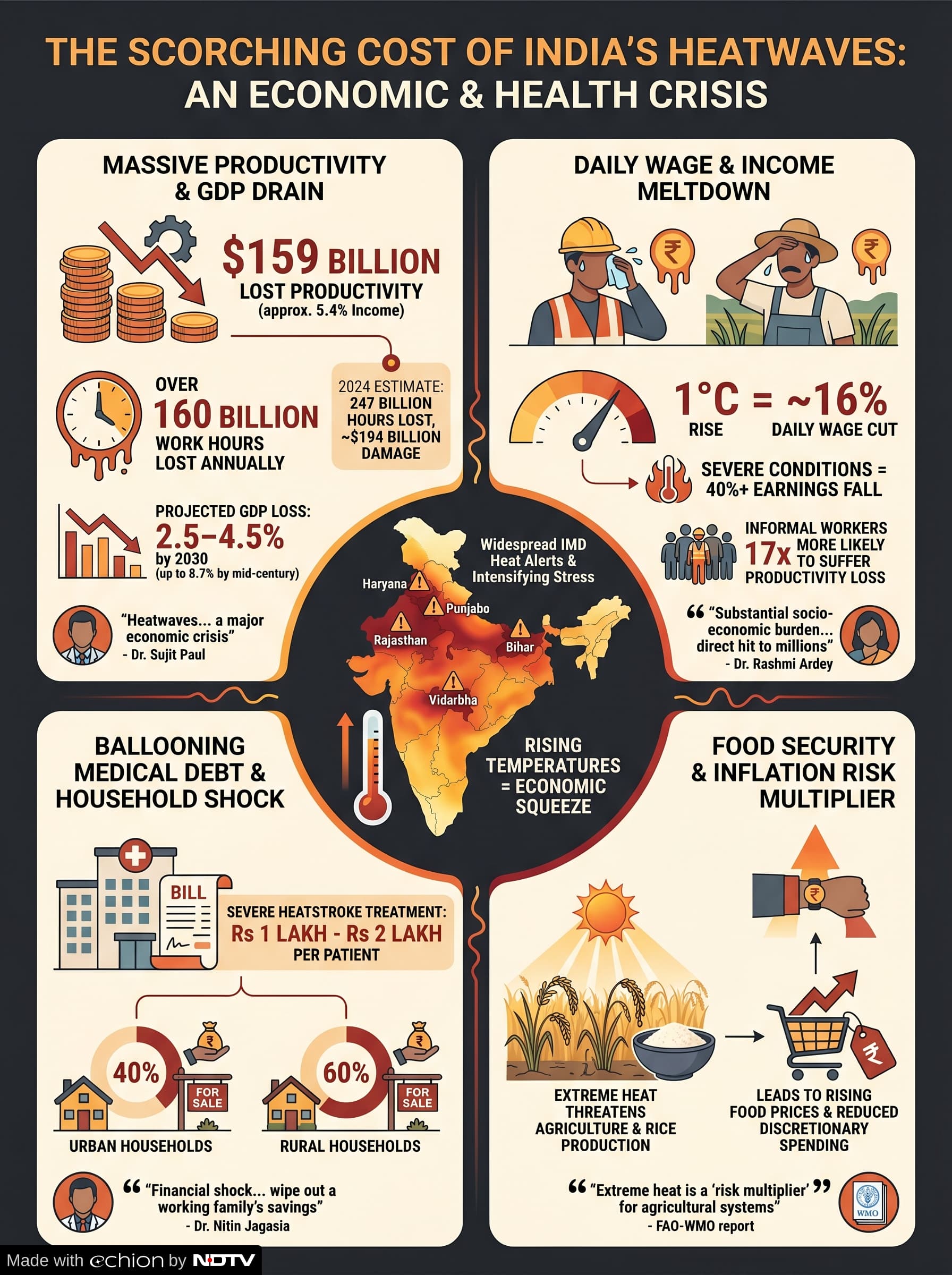 As the India Meteorological Department (IMD) issues widespread heatwave alerts across Haryana-Chandigarh-Delhi, Punjab, East Rajasthan, Bihar, Vidarbha (Maharashtra), Chhattisgarh and Jharkhand, economists and health experts are warning that the blistering heat will do more than sizzle temperatures — it will squeeze economic growth, cut productivity and balloon medical costs.