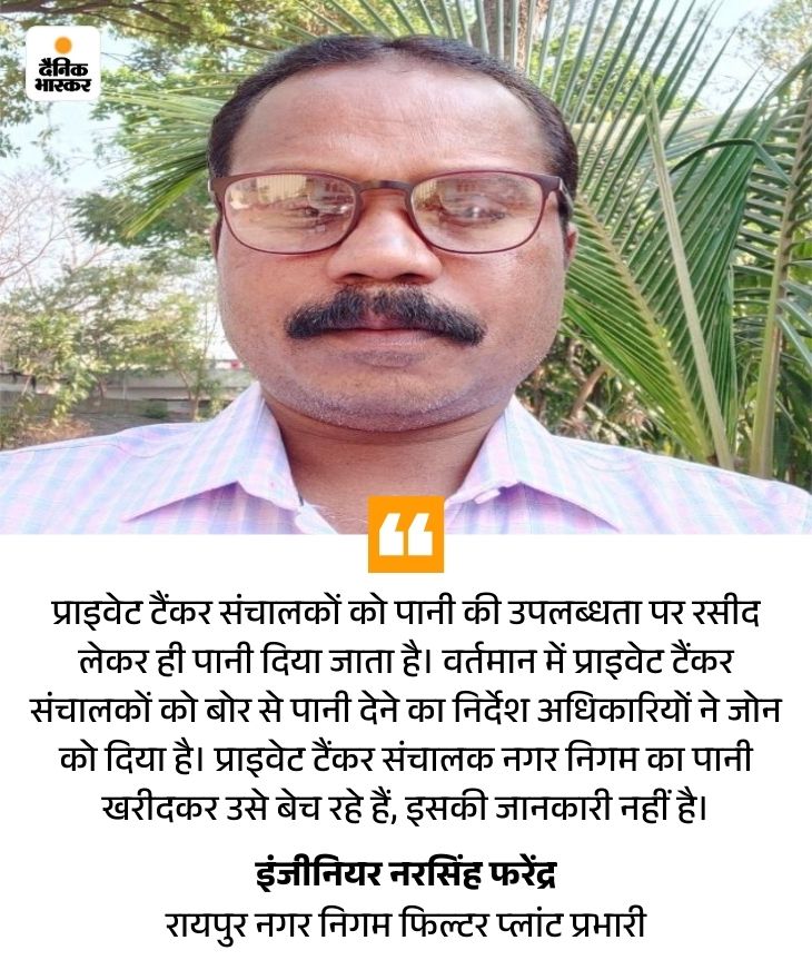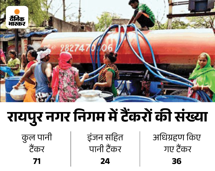 इनका टोटल करें तो रायपुर शहर में प्राइवेट टैंकरों की संख्या 120 से 140 के बीच है। ये टैंकर संचालक निगम के पानी से अपना कारोबार कर रहे हैं।