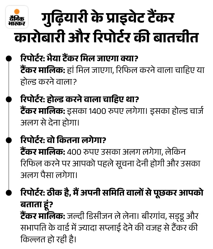 पानी बेचने वाले टैंकर संचालक छोटा, मीडियम और बड़ा तीन कैटेगरी में टैंकर रखते हैं। इसी हिसाब से पैसा लिया जाता है।