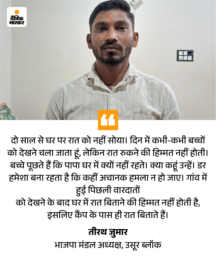 तीरथ कहते हैं-“दो साल से घर पर रात को नहीं सोया। दिन में कभी-कभी बच्चों को देखने चला जाता हूं, लेकिन रात रुकने की हिम्मत नहीं होती। बच्चे पूछते हैं कि पापा घर में क्यों नहीं रहते। क्या कहूं उन्हें? डर हमेशा बना रहता है कि कहीं अचानक हमला न हो जाए।”