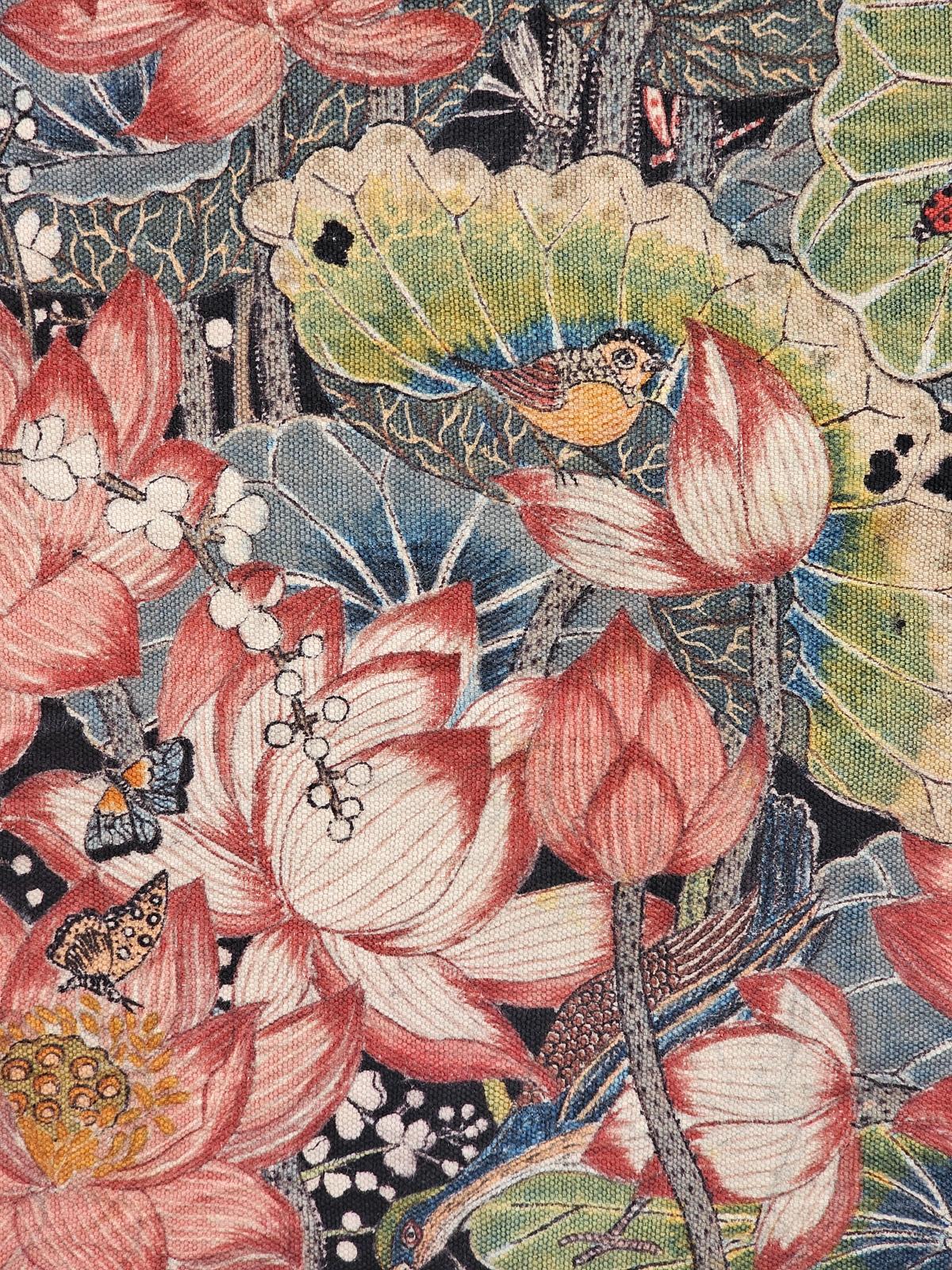 Biswas’s interest was first piqued by a large handpainted chintz from the TAPI Collection (a private collection of textile and art in Surat) in the early 2000s. He followed it up with a seven-day workshop with French-Canadian artist Michel Garcia in 2009. But it was only during the pandemic lockdown that he was able to put paint to cloth, remaking chintz with foliage, fauna and Vishnu avatars in natural dyes. Inspiration comes from childhood memories, calendar art, even holidays in North Bengal tea gardens. “It’s all an expression of my love for textiles,” he says, refusing to draw lines between his various practices. “There are all parts of my whole being coming together.”