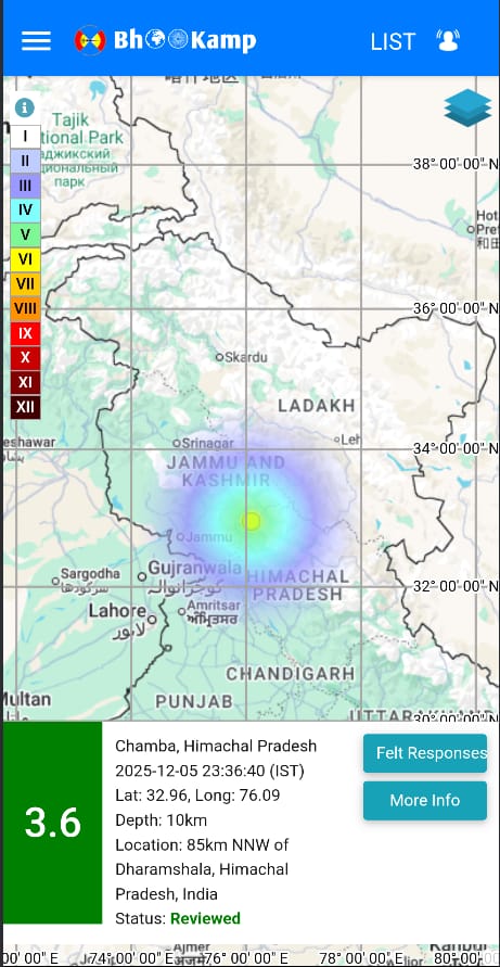 Earthquake Chamba midnight Himachal Pradesh National centre for seismologist | हिमाचल में आधी रात भूकंप के झटके: 3.6 मापी गई तीव्रता, घरों से बाहर भागे लोग, कोई जानी नुकसान नहीं – Chamba News