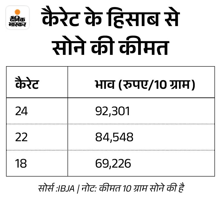 - भोपाल: 10 ग्राम 22 कैरेट सोने की कीमत 87,250 रुपए और 10 ग्राम 24 कैरेट सोने की कीमत 95,180 रुपए है।