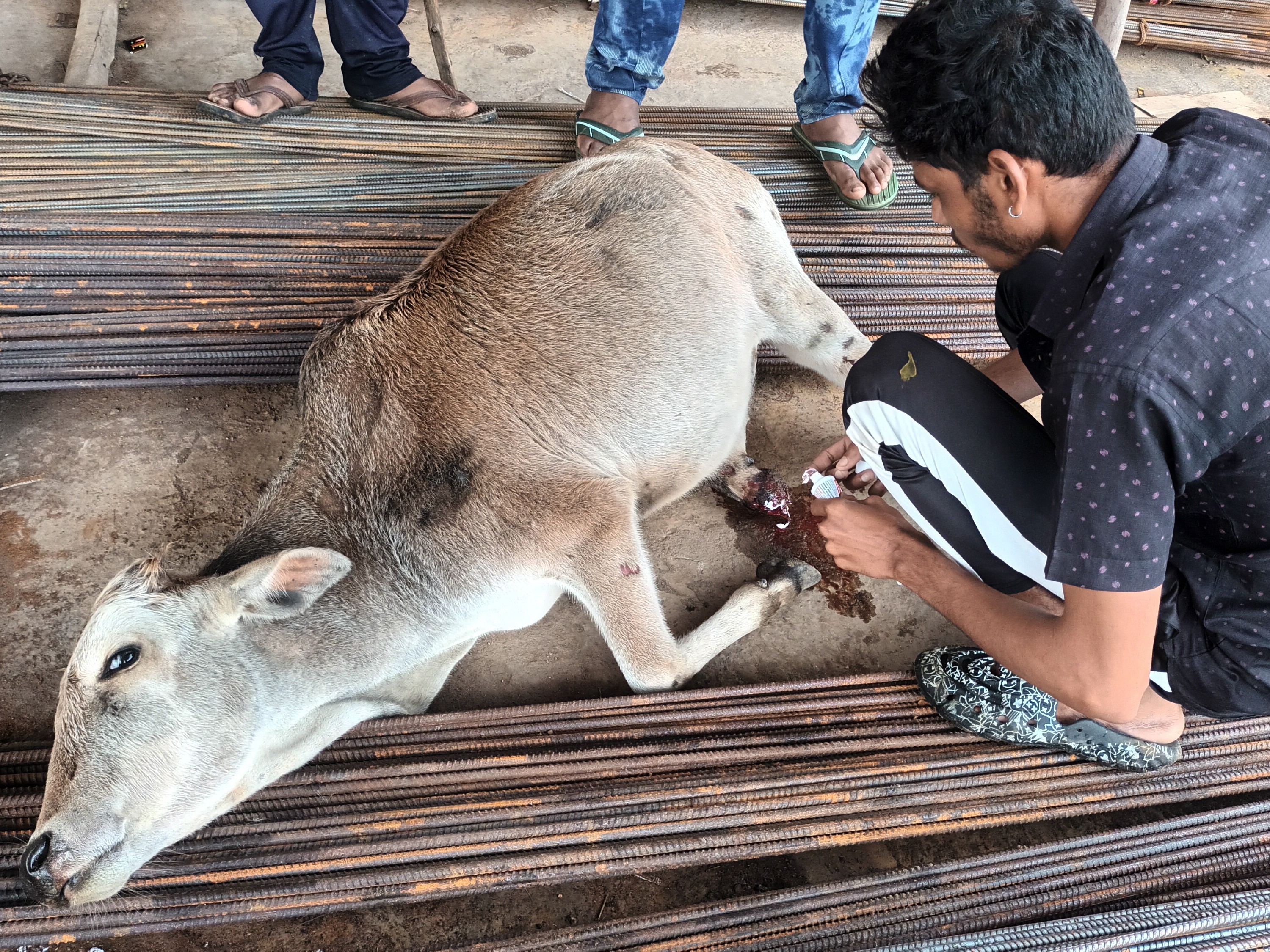 दूसरा मवेशी बुरी तरह घायल हो गया, उसकी पूंछ कट गई और पिछला पैर टूट गया। घटना की सूचना मिलने पर गौ सेवक मौके पर पहुंचे। उन्होंने घायल मवेशी को सड़क किनारे सुरक्षित किया, प्राथमिक उपचार दिया और फिर उसे पशु चिकित्सालय पहुंचाया।