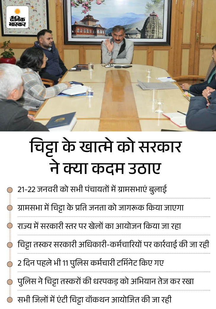 पंचायतीराज मंत्री ने कहा कि, हर पंचायत में चिट्टे के खिलाफ समन्वय के लिए नजदीकी स्कूल के प्रिंसिपल को नोडल अधिकारी बनाया जाएगा। इसके साथ ही चिट्टे से जुड़ी सूचना देने वालों को प्रोत्साहित करने के लिए इनाम की व्यवस्था भी शुरू कर दी गई है। उन्होंने कहा कि सूचना देने वाले की पहचान गोपनीय रखी जाएगी। कुछ लोगों को इनाम मिलना शुरू हो गया है।