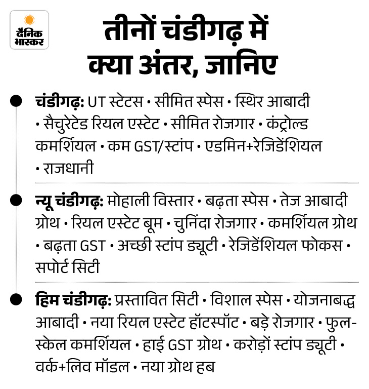 - चंडीगढ़ से 30 किमी दूर होगा ये शहर: हिम चंडीगढ़ मेन चंडीगढ़ शहर से करीब 30 किलोमीटर दूर होगा। हिम चंडीगढ़ को बद्दी-चंडीगढ़ रेल लाइन से भी जोड़ने का प्रस्ताव है। इससे हिमाचल, पंजाब और चंडीगढ़ के बीच आवाजाही और औद्योगिक गतिविधियों को नई गति मिलने की उम्मीद है। चंडीगढ़ से हिमाचल के सबसे नजदीकी क्षेत्र की बात करें तो वह करीब 5-6 किमी दूर बद्दी है।
