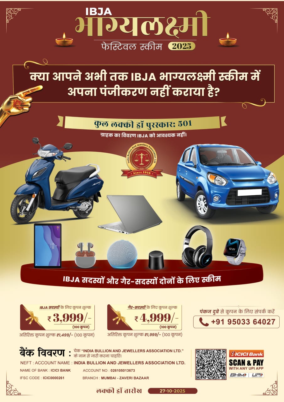 IBJA Announces the Launch of the ‘Bhagyalaxmi Scheme 2025’ to Reward Patrons | IBJA की भाग्यलक्ष्मी योजना 2025 का ऐलान: स्कीम 22 सितंबर से 26 अक्टूबर 2025 तक चलेगी; कार-लैपटॉप जैसे इनाम जीतने का मौका