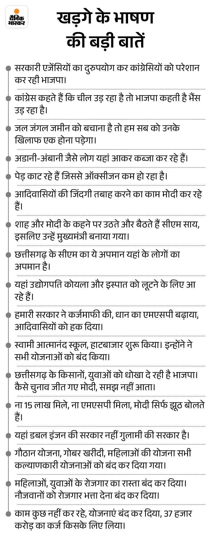 खड़गे बोले- नीतीश-नायडू की टांगों पर चल रहे मोदी: रायपुर में कहा- हर जगह गरीबों को लूट रहे, कांग्रेस कार्यकर्ता मर-मिटने को तैयार
