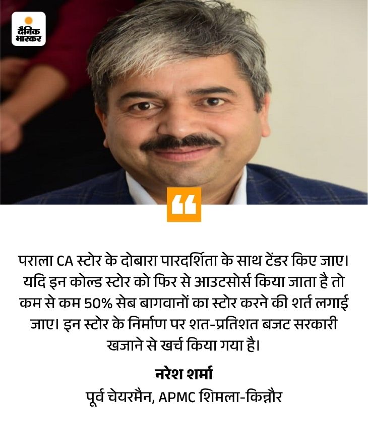 APMC (कृषि उपज विपणन समिति) शिमला-किन्नौर के पूर्व चेयरमैन नरेश शर्मा ने बताया- 75 करोड़ रुपए से बने सरकारी सीए स्टोर को मात्र 3.36 करोड़ रुपए के किराए पर देना सरेआम लूट है। उन्होंने इन कोल्ड स्टोर के दोबारा पारदर्शिता के साथ टेंडर करने की मांग की है। उन्होंने कहा-