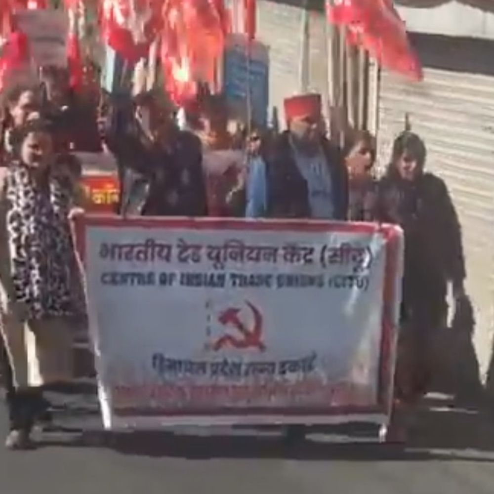 शिमला में सीटू (CITU) और अन्य वामपंथी संगठनों ने किसानों-मजदूरों के राष्ट्रव्यापी आह्वान पर एक विशाल रैली निकाली। यह प्रदर्शन केंद्र सरकार की कथित मजदूर-विरोधी नीतियों और चार लेबर कोड के विरोध में किया गया।