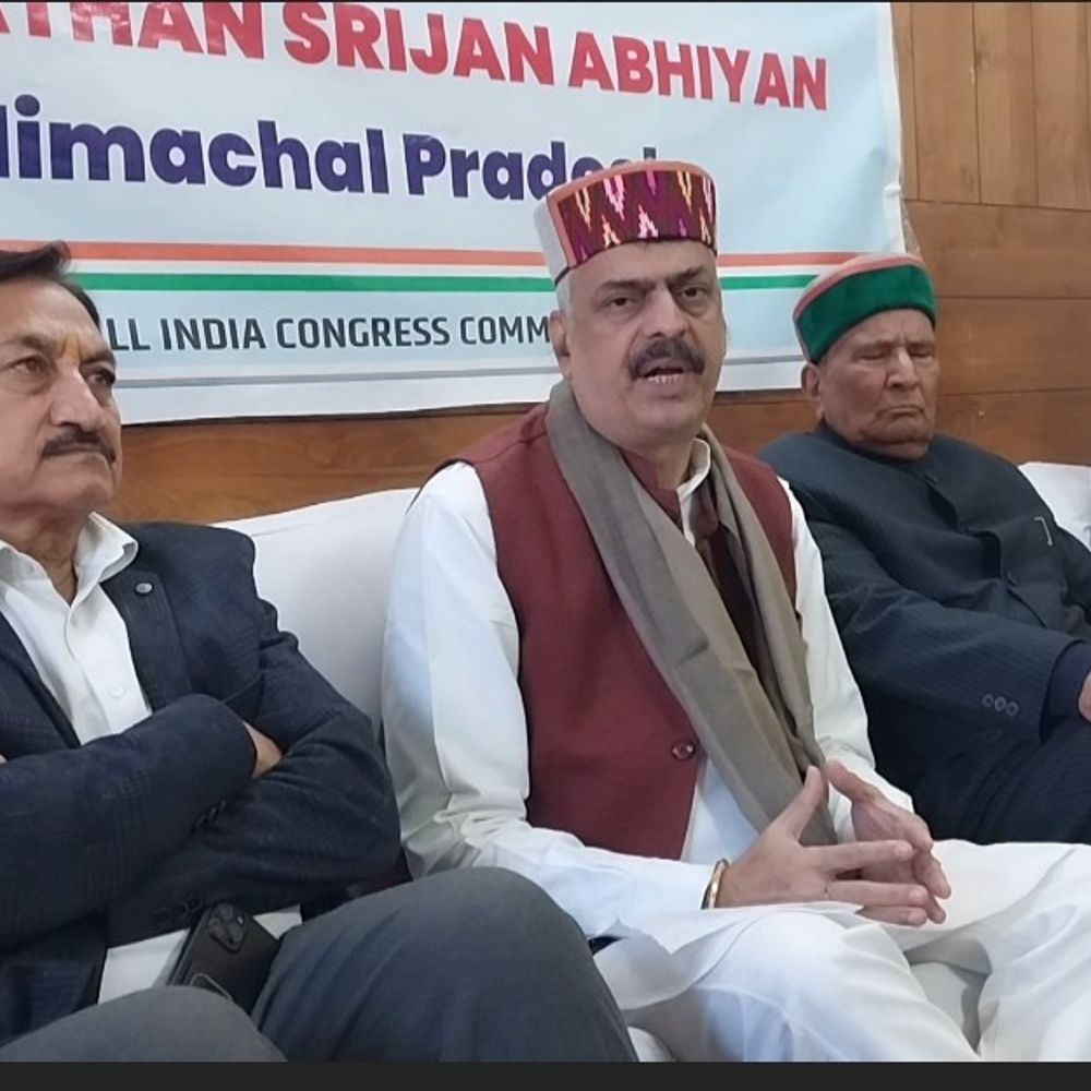 मंडी में प्रेसवार्ता करते कांग्रेस के पदाधिकारी