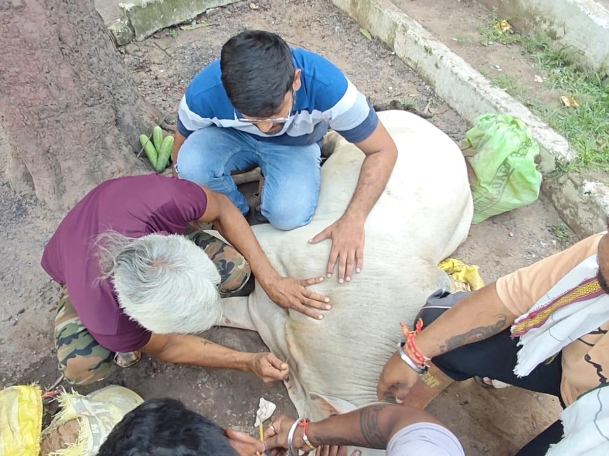 Unique protest by cow protectors in Dhamtari | धमतरी में गौ सेवकों का अनोखा विरोध: निगम कार्यालय के सामने घायल गाय का किया इलाज, कहा- गौशालाएं भरी, व्यवस्था सुधारो – Dhamtari News
